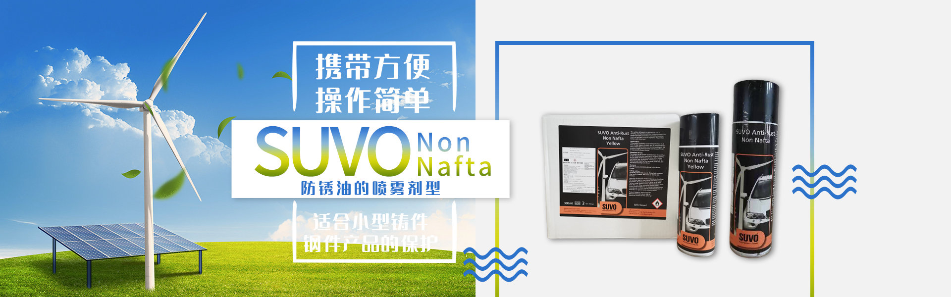 該產(chǎn)品為Non Nafta防銹油的噴霧劑型。適合對小型鑄件、鋼件產(chǎn)品的保護;同時噴罐帶有細長噴嘴,容易進入鋼件或鑄件的小孔、內(nèi)腔等難以用刷子涂刷的地方。本品也非常適用于野外環(huán)境下小范圍檢修后對金屬部件的補防,攜帶方便、操作簡單。